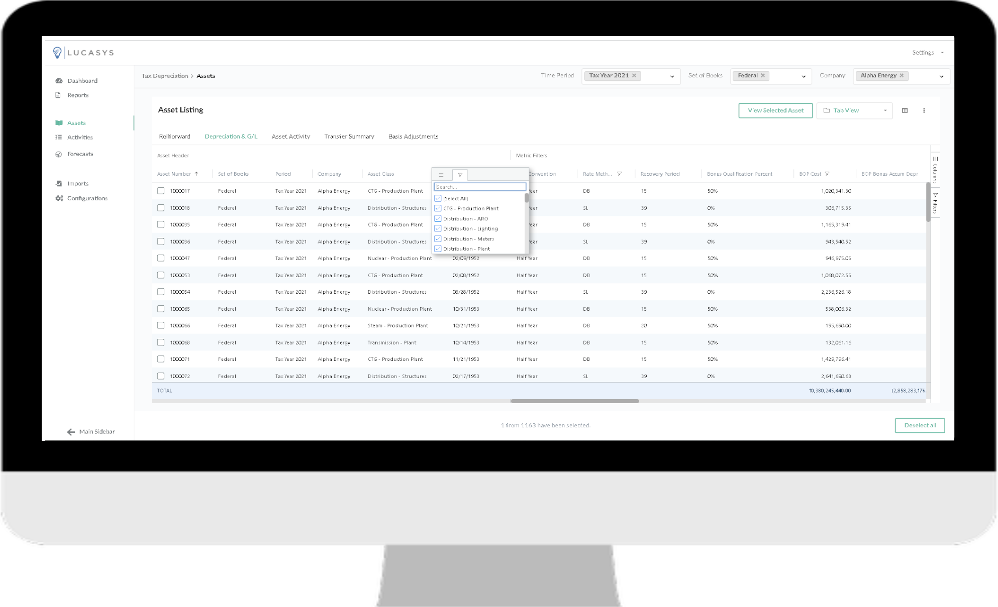A key feature of Lucasys Depreciation’s usability is attributable to its native grid functionality, including a high-performance data grid that allows users to easily manipulate and display large amounts of data. Users can quickly filter, sort, and group data, making it easy to find the information they need. Lucasys data grids feature customizable column layouts and drag-and-drop functionality, allowing users to tailor the software to their specific needs. By incorporating advanced grid functionality, Lucasys Depreciation provides an intuitive and streamlined user experience that is accessible to any user familiar with modern spreadsheet technology.