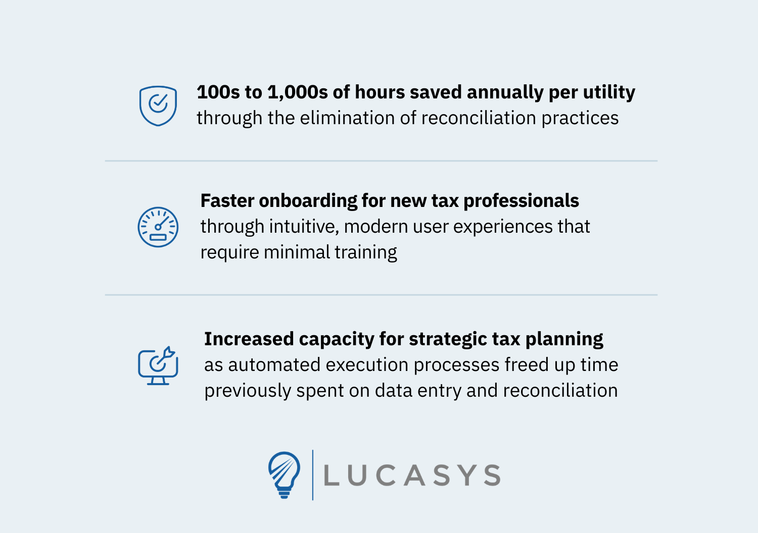 Increased capacity for strategic tax planning as automated execution processes freed up time previously spent on data entry and reconciliation